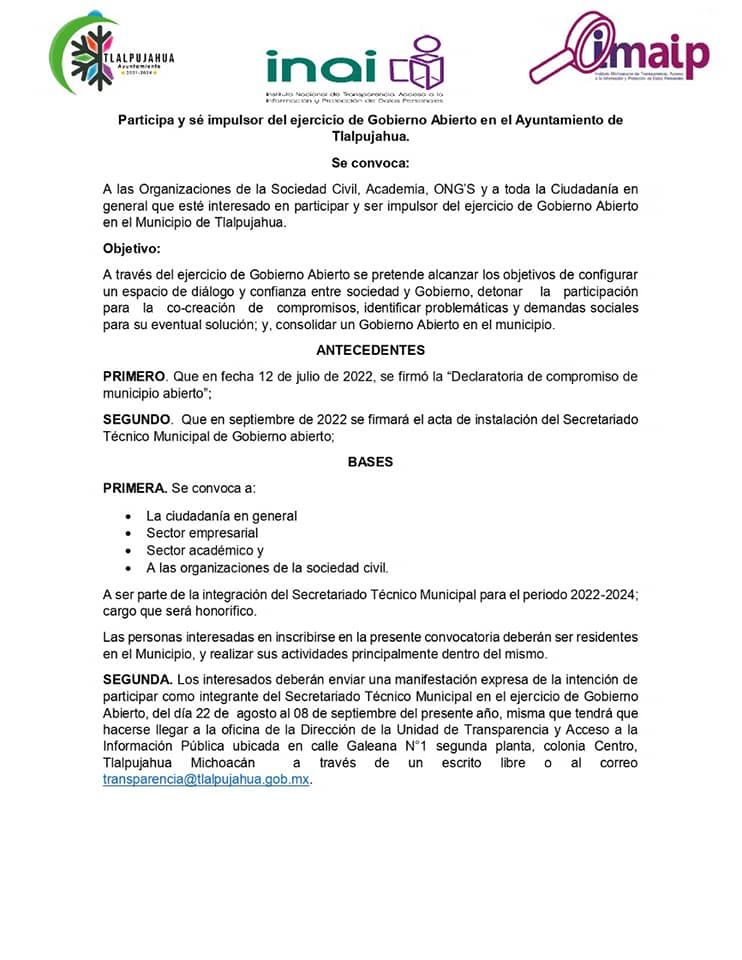 CONVOCATORIA SECRETARIADO TÉCNICO MUNICIPAL